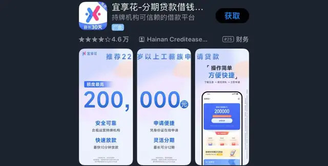 宜享花,是其核心产品,面向个人和小微企业主,提供信用借款和消费分期服务。