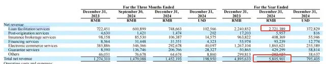 他创办的宜人智科,做的是助贷、保险经纪和电商生意,于3月20日,发布成绩单。其2024年斩获58亿元收入,获得15.8亿元净利润,同比下降24%。